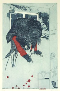 ![]() Pit Morell "Schlittschuläuferin, Roby´s Blut" 1971 3-farbige Radierung |