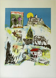 ![]() H.P. Zimmer (1936 - 1992) "Landleben" 1973 Lithographie |